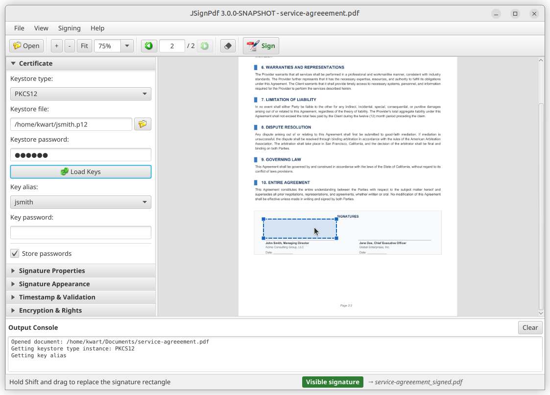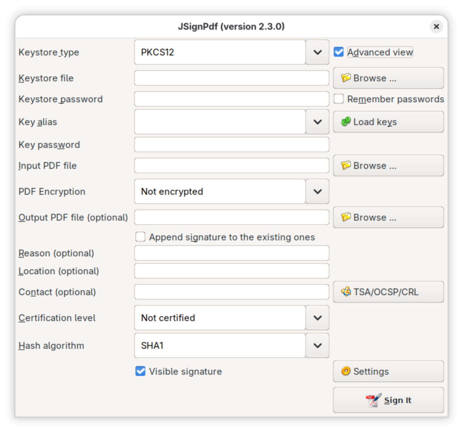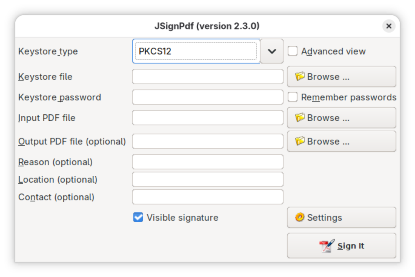 A look at the JSignPdf desktop UI. Click any image to see it full-size.