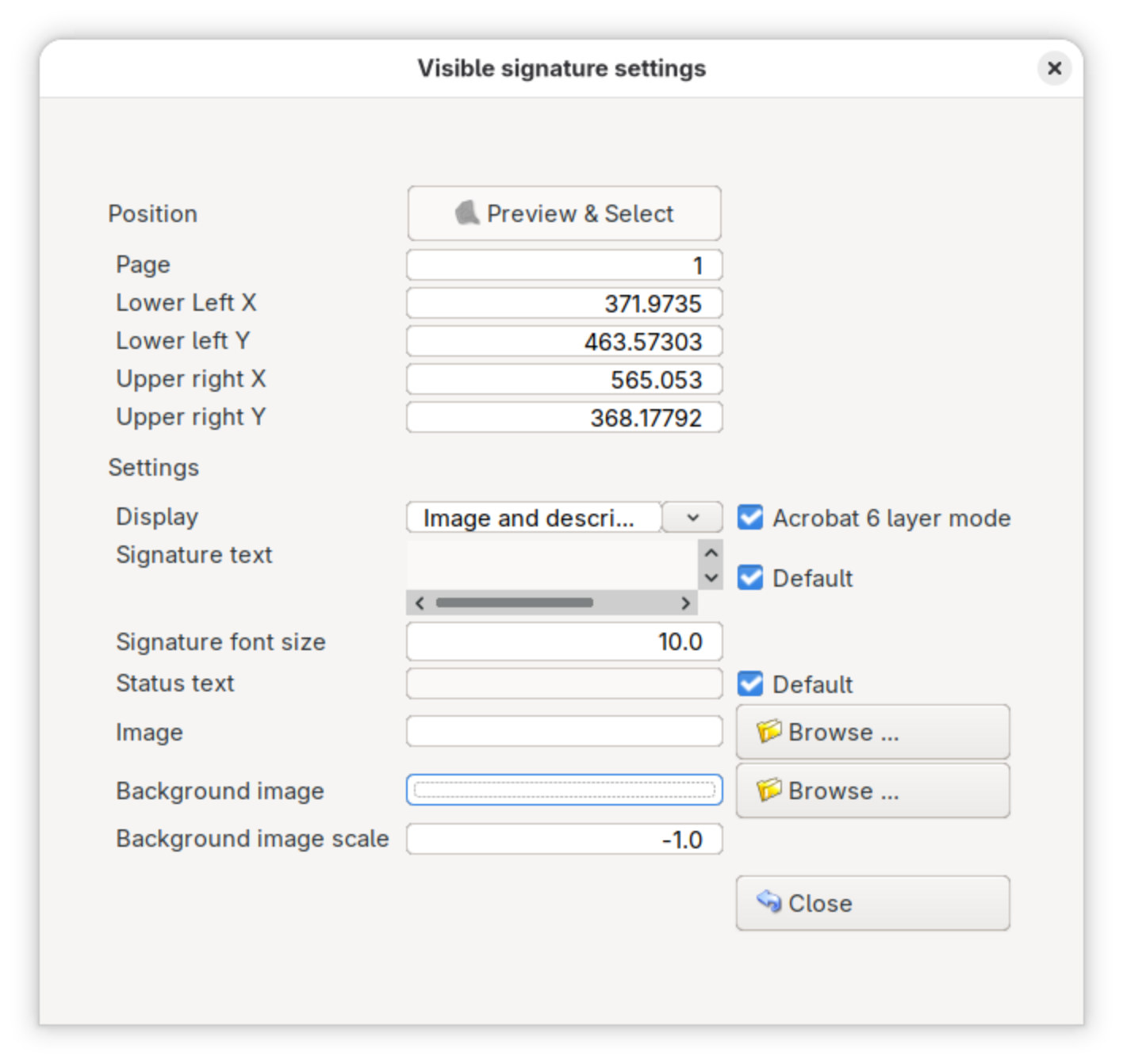 Shift-drag on the document preview to position the visible signature block.